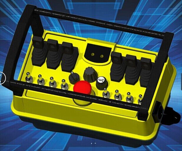 8、 針對重型重工設備,可定制多個比例桿+多個撥桿或按鍵組合方式控制,或多個搖桿組合式控制方式,如6比例桿+8撥桿控制非標工業(yè)遙控器定制,三搖桿工業(yè)遙控器定制等,以適應大型重工設備多機構多角度多方向多速度的協(xié)同或單獨控制的操作可能。并設置歐規(guī)急停蘑菇頭旋鈕,確保在緊急情況下,能夠瞬間切斷被控端總電源及遙控器系統(tǒng)關機,保障瞬間緊急停止設備動作,以確保人身生命安全及設備安全。