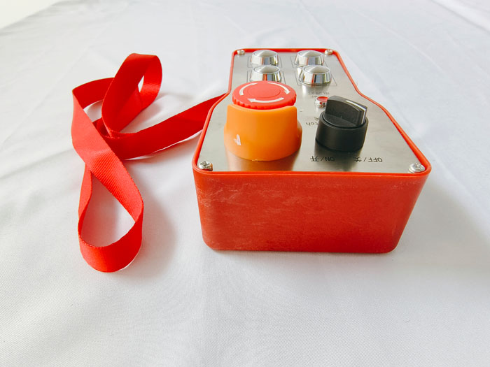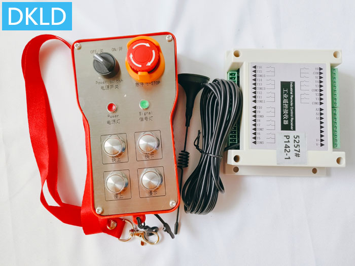 本次產(chǎn)品型號(hào)DH-Z4F500(DC24V或AC220V或AC380V/500米/1發(fā)1收), 4個(gè)按鍵,點(diǎn)動(dòng)式控制,且兩兩互鎖邏輯,另有啟動(dòng)+急停旋鈕。